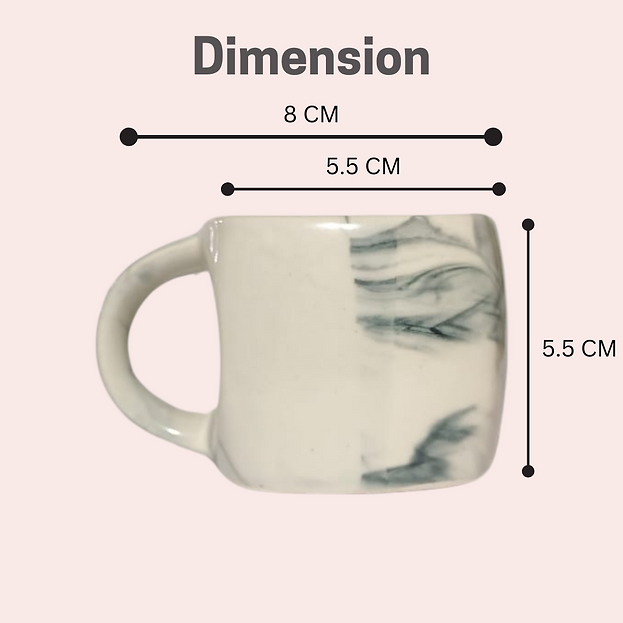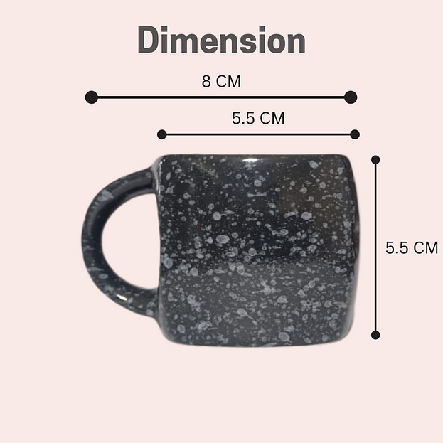 Black Marble Small Square Sparkle Ceramic Tea Cup Set of 5