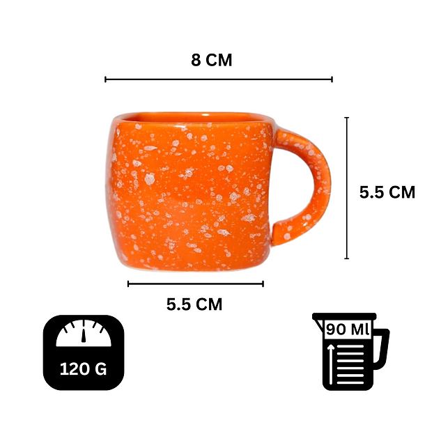 Premium Orange Small Square Shape Sparkle Ceramic Tea Cup Set Of Six